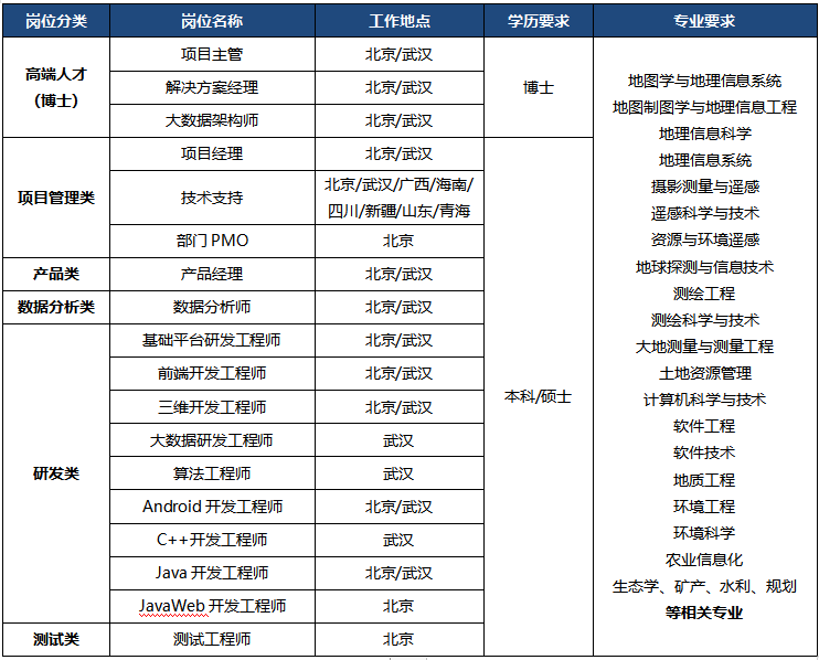 方法1 – 请登录吉威校园招聘官方网站进行简历注册并对照岗位投递简历,招聘官网地址://geoway.zhiye.com/ (或搜索“www.geoway.com.cn” → 点击“关于”→ 进入“人才招聘”)。