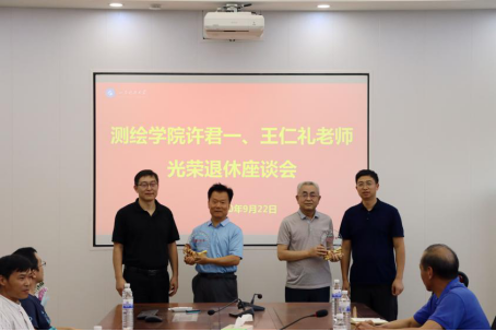 秦昌盛做了总结发言,他说两位老师虽然离开了工作岗位,但是依然会关注着学院的发展,退而不休。学院的发展离不开一代代的测绘人的付出,饱含着老师们的心血和汗水,凝聚着他们的聪明才智和精神追求。希望学院全体教师以两位老师为榜样,坚定理想信念,潜心教书育人,传承测绘精神,把学院建设的越来越好。