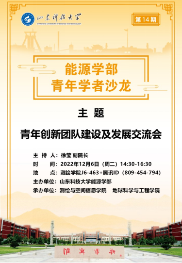 和地球科学与工程学院联合承办的第14期“能源学部青年学者沙龙”活动以线上会议形式召开,沙龙主题为“青年创新团队建设及发展交流会”。校人才工作办公室郭洪波副主任、土木工程与建筑学院冯强副教授、禁闻网