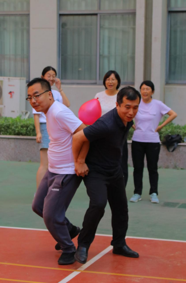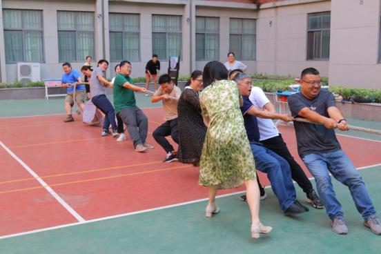 在拔河比赛中,比赛还未开始,老师们便已经压低重心,蓄势待发,摆好了“一拔头筹”的姿势。随着裁判员的一声令下,老师们立刻咬紧牙关、向后倾倒,双手紧握长绳,铆足了劲拼命往后拉。对阵双方势均力敌,互不相让,表现出强大的向心力和凝聚力。在场师生的加油声、呐喊声响彻赛场,竞技与友谊齐飞,热烈与欢笑共舞。
