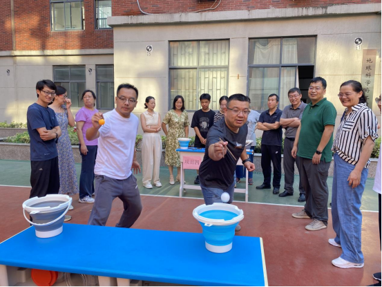 本届趣味运动会设投飞镖、保龄球、踢毽子、看谁夹得快、背靠背运气球、跳绳六类个人项目和拔河一个集体项目。无论是投飞镖、保龄球还是踢毽子,每个项目都充满了激烈的竞争和欢乐的氛围,老师们赛在其中、乐在其中。