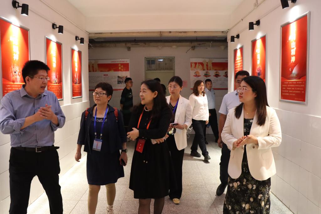党委副书记兼副院长吴昊、学工办主任(团委书记)孙金香向专家组一行介绍了学院一站式社区建设,带领参观了学生宿舍、公寓文化长廊、国旗护卫队办公室等,讲解了学院学团工作发展变化。