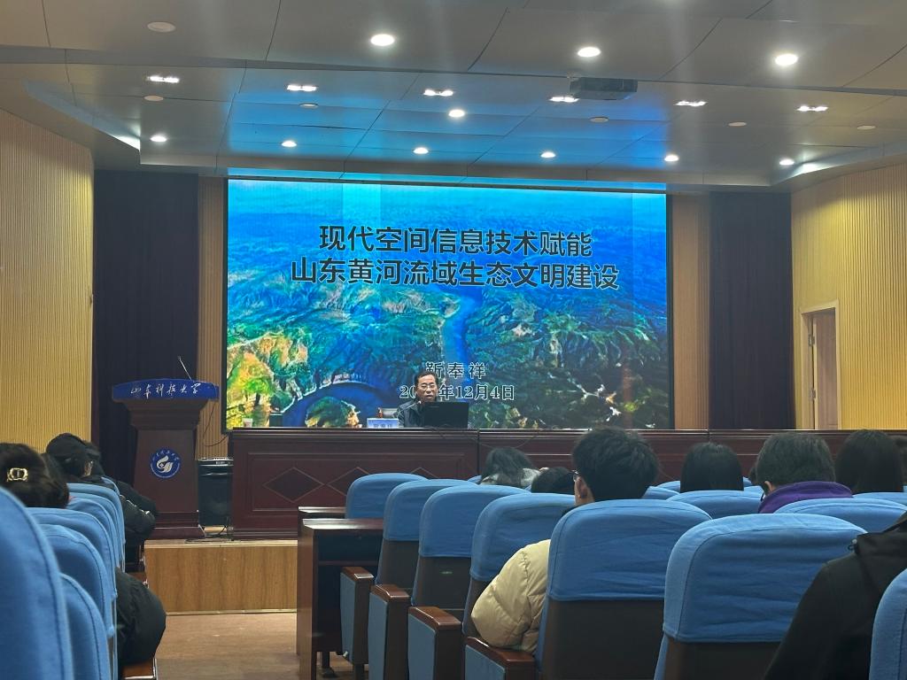 第四十四期智“绘”讲堂在J6-434报告厅成功举办。本期讲堂邀请到了国家新世纪百千万人才工程国家级人选、俄罗斯自然科学院院士、山东省特聘院士专家靳奉祥教授作题为“现代空间信息技术赋能山东黄河流域生态文明建设”的报告。报告由禁闻网