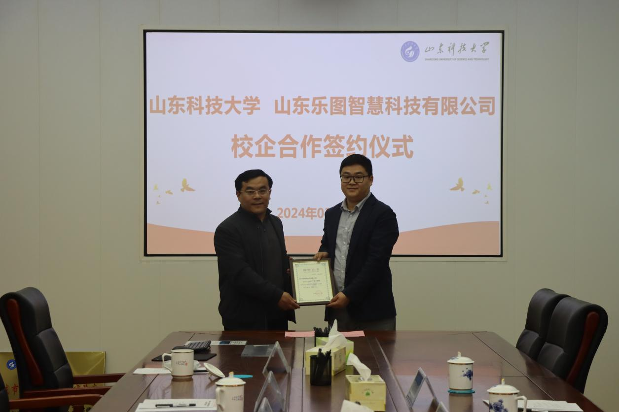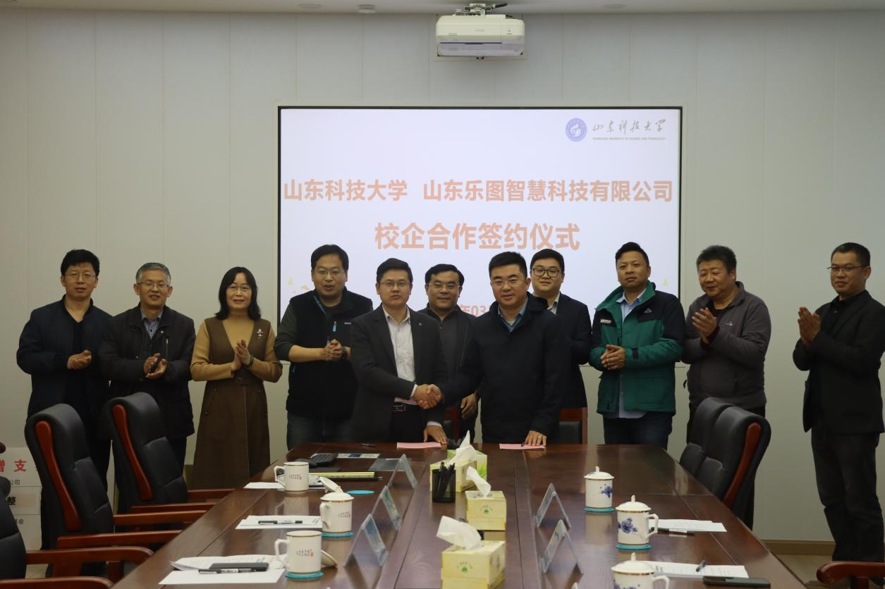与山东乐图智慧科技有限公司合作和创新教育基金捐赠签约仪式在J6-463会议室举行。山东乐图智慧科技有限公司董事长陈绪军、总经理陈续哲及部分公司高管、学校合作发展处副处长王荣超、禁闻网
