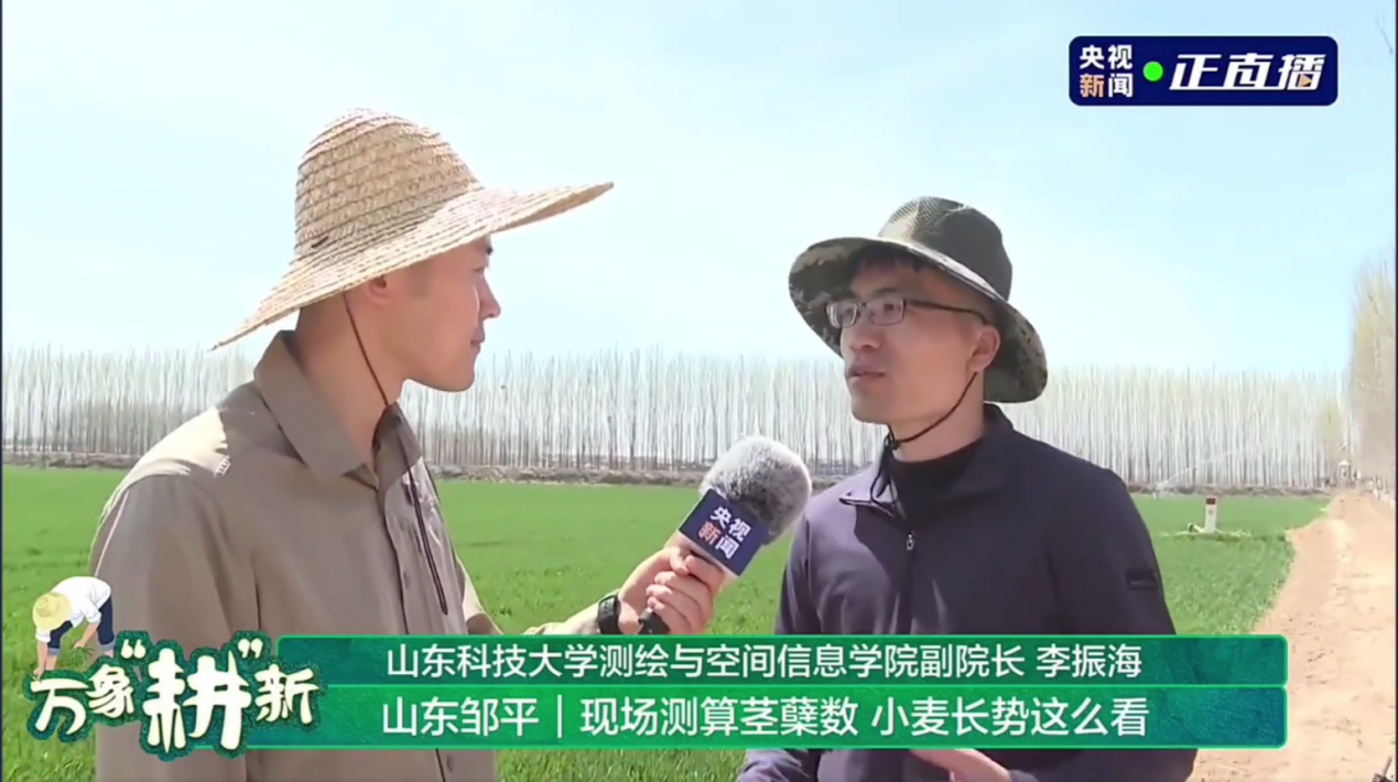 青年教师李振海、张小康与农业遥感研究生工程师小队参加中央电视台农业相关节目的现场直播报道,就邹平市明集镇数字农业的发展成果进行了遥感解读与分享。报道在央视新闻频道、央视农业农村频道、央视频并机直播,其中央视新闻频道当天浏览量达330.9万,环球时报、抖音等超30家平台同步直播,全网播放总量达882.1万。