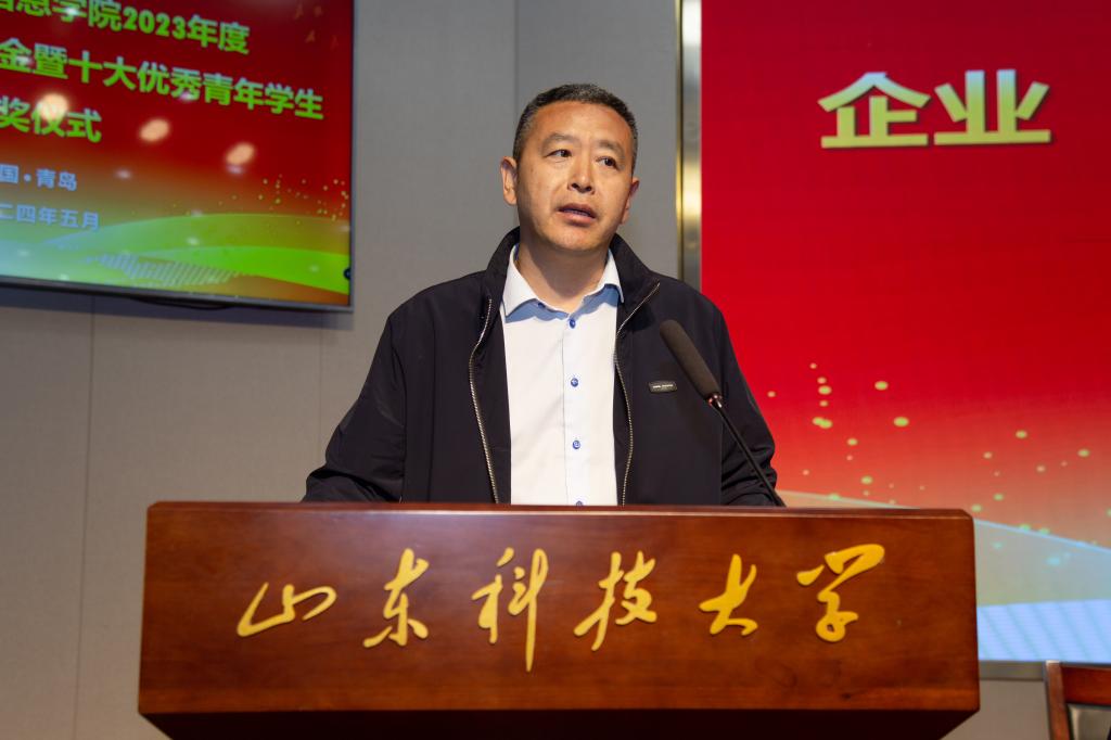 于逸夫讲堂举行2023年度企业(校友)奖学金暨十大优秀青年学生颁奖仪式,校党委常委、组织部部长王震,校团委书记高一丹,学生工作处副处长靳凯,研究生院副院长刘松,合作发展处副处长王荣超,上海华测导航技术股份有限公司山东分公司副总经理尹建平,青岛中海基业海洋科技有限公司总经理侯健,青岛恒海盛海洋科技有限公司董事长胡守田,2007级校友、华信青石控股集团董事长,青石公益发起人王志民,2010级校友、山东道合共创信息技术有限公司执行副总裁王猛及各企业部门代表出席仪式,学院全体辅导员、获奖学生、200余名学生代表参加仪式。颁奖仪式由禁闻网