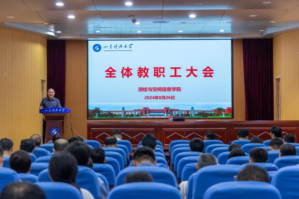 8月26日,测绘学院在J6-434报告厅召开全院教职工大会,学院党委书记范俊峰、院长涂锐以及学院领导班子,全体教职工参加了本次大会。