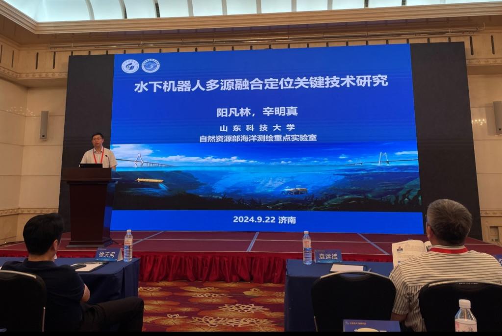 阳凡林在“空天时空信息与导航”分论坛作了题为“水下机器人多源融合定位关键技术研究”的学术报告。报告介绍了水下机器人精密定位领域的研究现状、基本理论,并分享了在水声多信标约束定位、特征匹配位姿改正以及鲁棒自适应滤波等方面的研究成果,并与会场同行进行了深入交流。