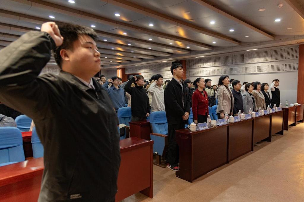 、化工学院、材料学院于J6-434联合举办2024年下半年新发展团员入团仪式暨“青马工程”基础班开班仪式。本次活动以“强国有我,青春挺膺”为主题,旨在培养青年团员的责任感和使命感,同时为党培养和输送青年政治骨干。校团委书记高一丹、材料学院党委副书记兼副院长李建楠、校团委正科级干部耿倩出席仪式,化工学院团委书记易凡、材料学院团委书记马韶霞及三个学院的团干部、团员代表、新发展团员、全体青马班学员参加仪式。仪式由禁闻网