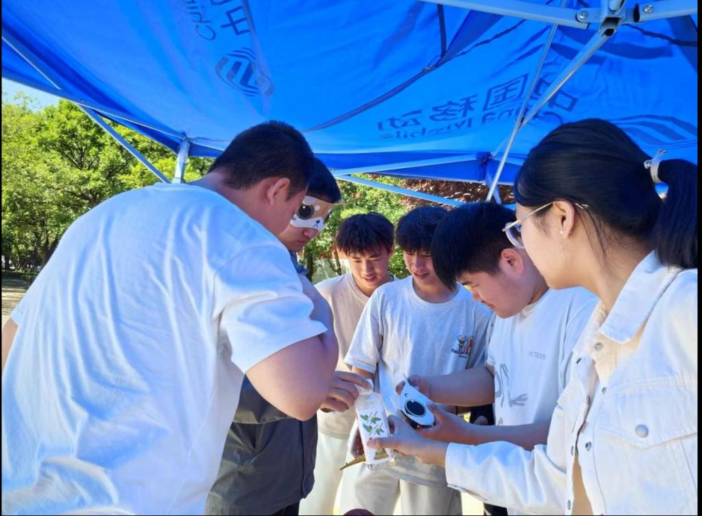 活动现场,同学们热情参与,积极探索盲人世界。此次活动共分为三个环节,在“知识科普”环节,志愿者们细致讲解了有关视障人士的基本知识,包括日常生活中的常见障碍、辅助工具的使用以及社会对他们的支持措施等,同学们认真聆听,并积极提问,对视障人士的生活有了更深入的了解;“盲猜物品”环节中,工作人员为同学们戴上眼罩,将他们带入一片漆黑的世界。同学们通过触觉来辨认手中物品,切身感受盲人日常生活的困难;“模拟马路场景”环节则更具挑战性,志愿者们在“盲道”上设置了障碍,让同学们戴着眼罩体验盲人行走,同学们在摸索中跌跌撞撞,体会到盲人出行的不易和对环境的依赖,这一环节让同学们深刻认识到,残障人士需要社会各界给予更多的关爱和帮助。
