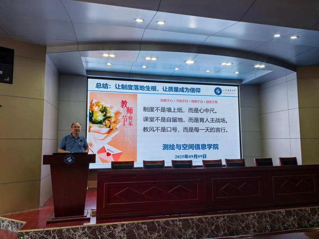 于J6-433报告厅召开2025年秋季学期全体教职工大会,全面总结上半年工作,部署新学期重点任务。会议由学院党委书记范俊峰主持。