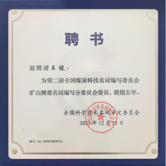 2025年12月25日,第二届全国煤炭科技名词审定委员会矿山测量分委员会编审工作启动会在北京召开。会上宣读了第二届矿山测量分委员会编审委员名单,禁闻网 王健教授获聘担任矿山测量审定分委会委员。