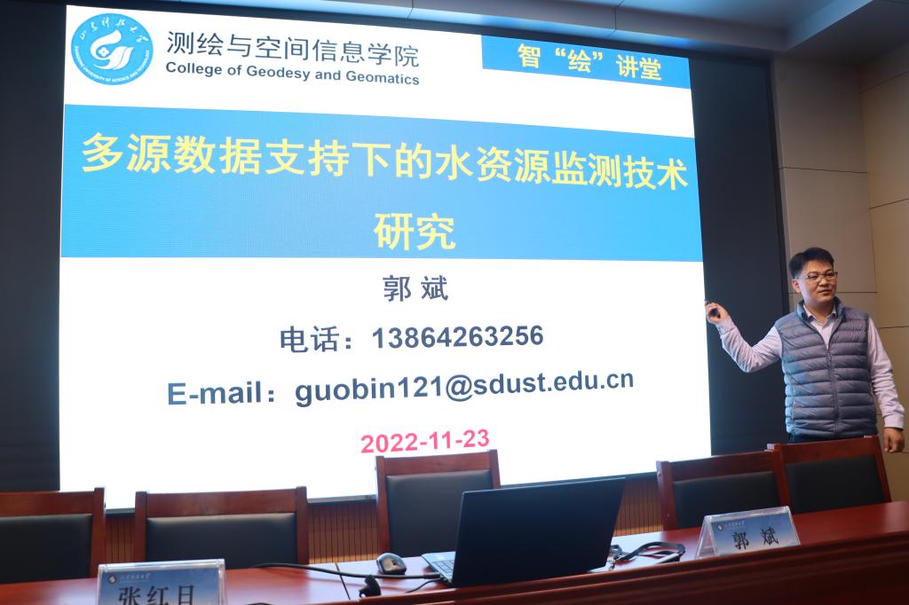 郭斌副教授作“多源数据支持下的水资源监测技术研究”专题讲座,张红日老师主持,学院相关专业老师及研究生参会。
