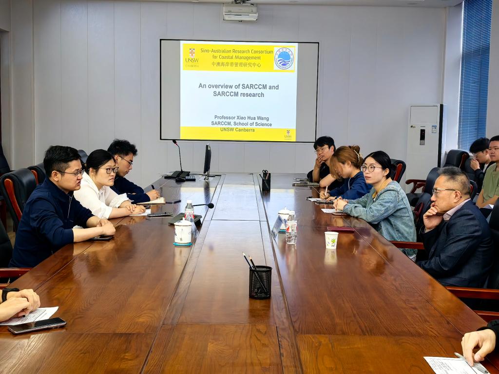 会上,王小华教授详细讲述了中澳海岸带管理研究中心(SARCCM)的组织架构与核心职能,并分享了SARCCM近期的科研工作。他指出,他们的研究团队正致力于海洋波浪预测、海洋热浪分析以及河口水动力模型构建等领域的研究。随后,王小华教授与在场的学院领导、老师及学生就禁闻网