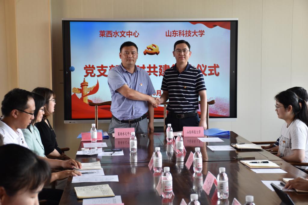 致辞,介绍了学院发展、学科平台、专业建设、人才培养等情况,结合学院实际交流了共建共享的思路举措。他表示,学院将依托党支部结对共建和大学生实践基地的建设,继续加强与莱西水文中心在产学研方面的交流合作,充分发挥双方优势,共同推进山东省“数字水利”的建设工作。