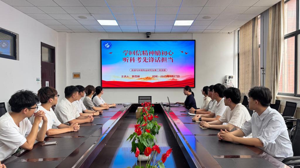 在中国共产党成立104周年即将到来之际,为激励研究生党员在科研实践中勇担使命,6月27日,资源与环境专业研究生第二党支部在J6-547开展“学回信精神励初心,听科考先锋话担当”主题党日活动。