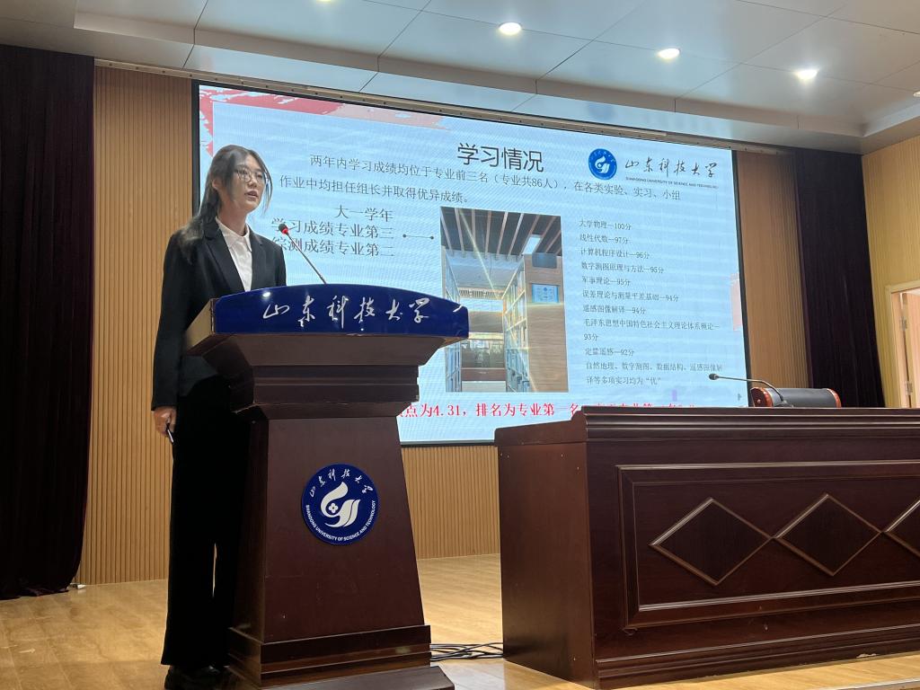 经过个人申请、学院审核,共有8位国奖候选人进入答辩环节。答辩伊始,主持人介绍了答辩流程及注意事项。随后,各位候选人依次上台进行答辩,他们分别从思想、学习、生活、科技创新、社会实践等方面汇报自己前一学年的情况,展现了测绘学子勤奋学习、敢于创新的精神面貌。
