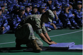 “出门看队伍,进门看内务”内务整理是军训的重要必修课之一,整洁卫生的宿舍环境,温馨和谐的宿舍氛围,是宿舍成员的共同愿望,也是度过美好大学生活的基础。在军训教官的带领下,22级学生走进宿舍开展内务整理规范的学习环节。