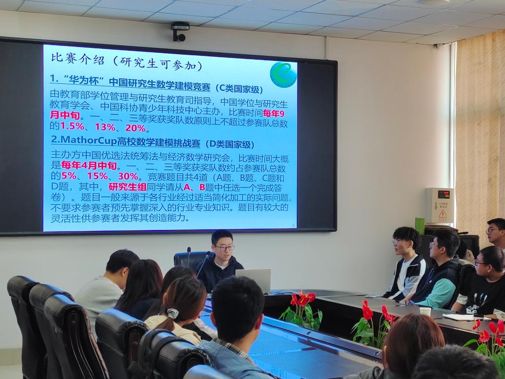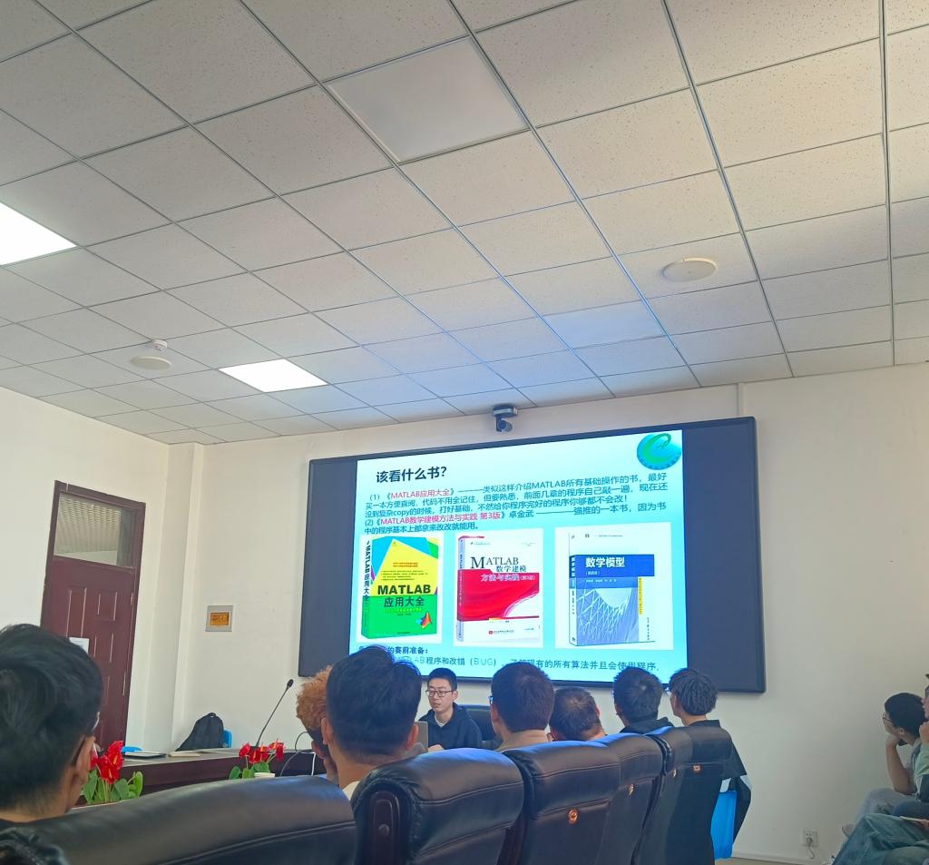 在J6-547举办23级研究生数学建模基础知识培训会,邀请来自硕研21-3班的国家奖学金获得者芦智伟作为主讲人,辅导员韩雪丽到会指导。