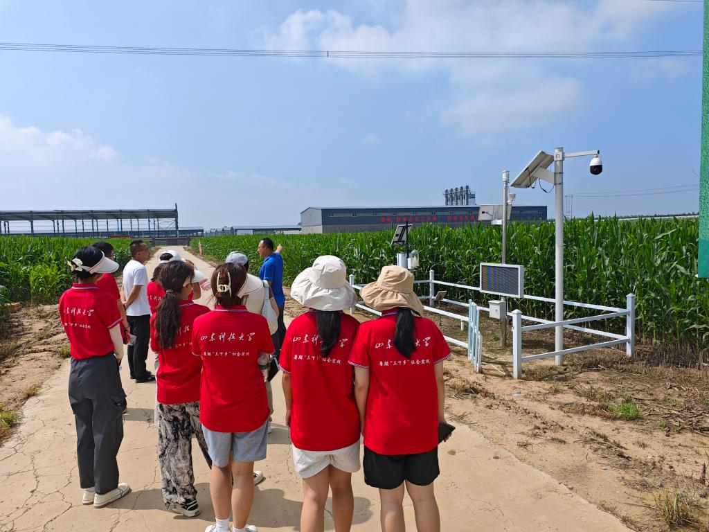 8月2日,实践团前往诸城中化现代农业技术服务中心参观学习。在李经理的带领下,团队参观了中化现代农业科研示范农场,该农场集成应用了物联网大数据分析、遥感监控等技术,实现了对作物生长环境的精准控制和对农业生产过程的智能化管理。