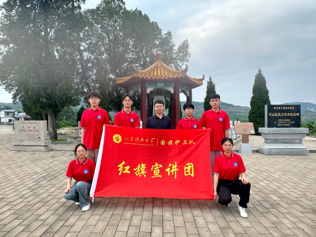 国旗护卫队红旗宣讲团前往尼山红色教育基地开展暑期“三下乡”社会实践活动。通过实地探访红色革命遗迹,深入学习中国共产党的伟大奋斗历程,激发青年学子的爱国情怀和报国使命。宣讲团成员依次参观了尼山区抗日纪念碑、尼山区抗日纪念馆、抗日小学、抗日后方医院、八路军兵营、防空洞等多个主题展区。参观过程中,宣讲团成员观摩尼山抗日战争复原沙盘,倾听“小山战斗”“三打白彦”等革命故事,近距离参观革命先辈的生活物品,深入了解了老一辈共产党人艰苦朴素、敢于牺牲、勇于奉献的革命精神。伴随着一声响亮的:“敬礼!”。在革命英雄雕塑前,全体成员向英雄致敬,这是红色的传承,更是思想的洗礼。红旗宣讲团成员李安冉说:“本次尼山之行,我们参观了尼山抗日纪念馆与抗日遗迹,学习了先辈们浴血奋战、艰苦斗争的英雄气概,我将不忘初心,刻苦学习,争做新时代有为青年!”红旗宣讲团将以此次活动为契机,扎实学习教育,讲好红色故事,传递红色力量!(通讯员:刘默、李安冉)