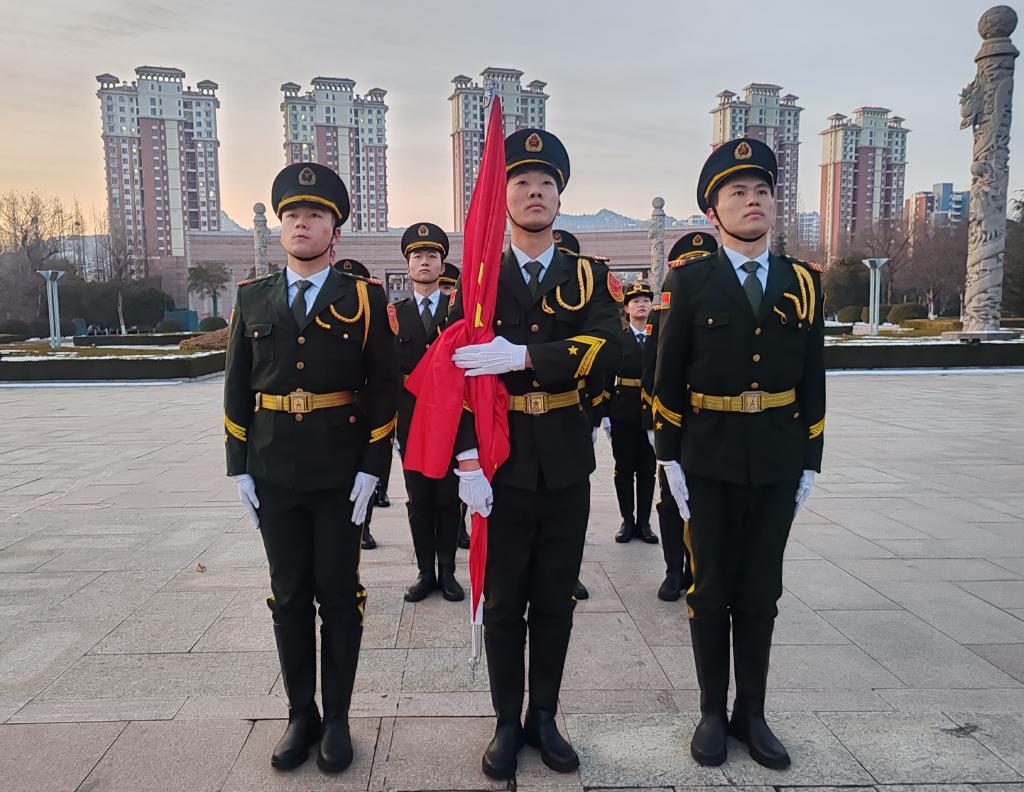 升旗仪式后,国旗护卫队负责人韩庆森说:“在寒假里,队员们停课不停训,坚持进行队列动作和体能训练,本次升旗仪式是队员们刻苦训练、扎实工作的最好见证。”
