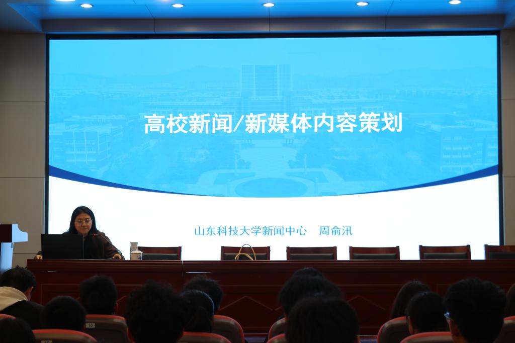 会上,周俞汛以“高校新闻/新媒体内容策划”为题,分别从新闻策划、高校新闻策划分类、怎么进行高校策划分类等三个方面对如何做好新媒体的选题策划进行了详实介绍,她表示,策划的秘诀是抓住新闻点,要通过小切口体现大选题,创新表达形式,同时,结合学院“山科测绘新青年”新闻案例进行分析,为学院新媒体尤其是公众号建设提供了思路,并鼓励同学们依托学院学科专业优势,用学生更容易接受和喜欢的方式传递测绘声音,讲好青年故事,增强学生的专业认同感和优越感,不断提升宣传工作质效。