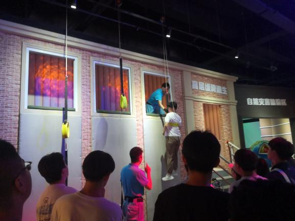在教育基地人员的指导下,参加体验活动的师生学习了安全防控知识,体验了常见安全隐患场景及应对措施,包括:火灾现场逃生模拟、地震场景逃生模拟、厨房火灾处理措施教学、心肺复苏教学、电气安全体验、地铁事故逃生体验等项目,大家在基地引导员的带领和讲解下,对各种场景下的逃生方法有了一个全面的了解,学习了各种常用的急救用具。