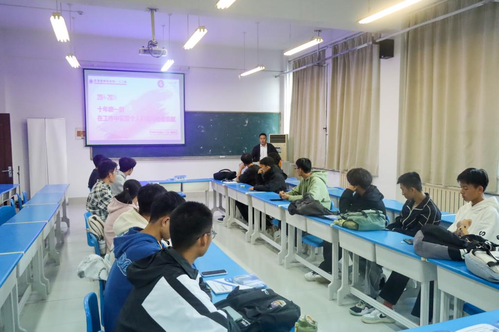 魏薪海以“十年磨一剑:在工作中实现个人价值与社会贡献”为题,围绕行业现状、职业规划、沟通技巧、团队合作及生活态度五个方面展开深入交流。在介绍中,他详细阐述了测绘专业在航空航天、自然资源、生态环境、交通水利等方面的多元工作内容及行业发展方向,并分享自己的学习和工作经历,引发同学们广泛共鸣。