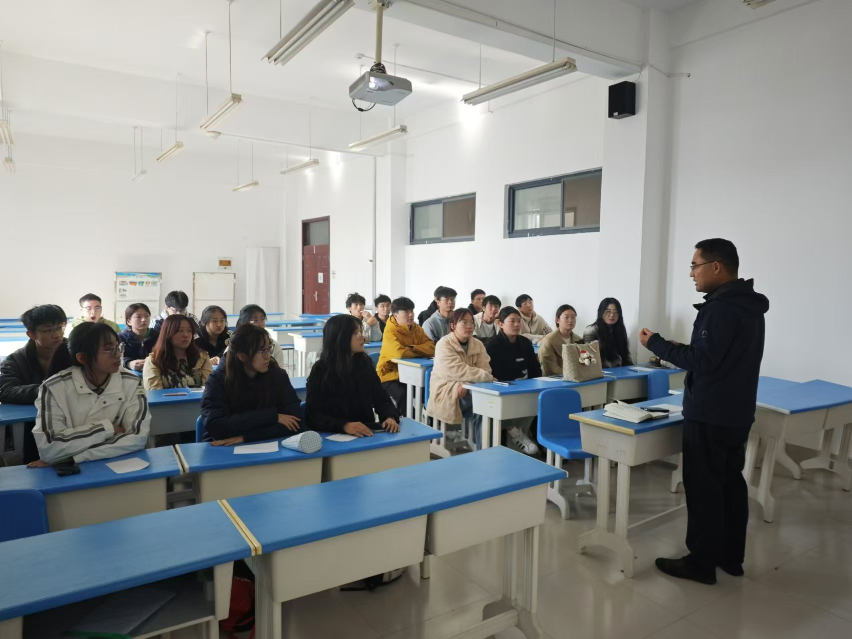 最后,党委副书记兼副院长、辅导员吴昊对主题班会进行了总结,肯定了班级前两年的整体工作,并对同学们做出了几点提醒,结合学院实际和学生现状,对学生的职业规划进行了详细的介绍,有针对性地为大家的学习与生活答疑解惑,鼓励同学们坚定信念、积极争取、明确定位、扬帆起航。