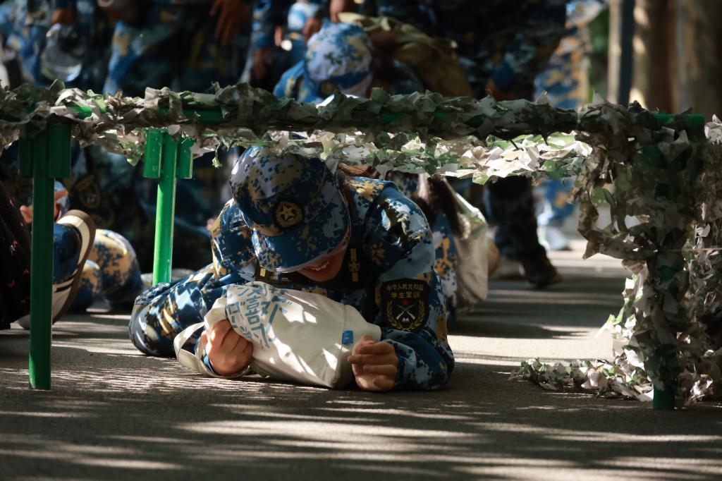 回想几日军训,我遇到了许多困难与挫折——往返的队列训练将疲惫书写在脸庞上,长时间的军姿将酸痛刻进膝盖中,高挂头顶的艳阳炙烤着双脚与脸颊。每当我想要放弃时,看到身边的“战友”都在咬牙坚持,我便告诉我自己一定要坚持下来。训练场上的我们身姿挺拔,如同茁壮生长的白杨,在阳光下闪耀着青春的力量。