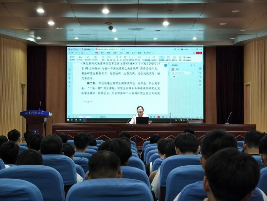 本次活动以学院副院长王瑞富教授围绕学位申请规范为主题拉开帷幕,王老师引导大家坚守学术诚信,维护学术尊严,抵制学术不端行为;学院副院长李振海教授从学院科研平台、科研项目、科研成果等方面对新生进行了专业教育,勉励新生努力科研;郭斌副教授则结合自己的科研经历,介绍了如何高效进行文献检索与资料管理;辛明真老师详细解读考试违纪处分条例,告诫学生遵章守纪;韩雪丽老师、韩冰老师、张德彪老师分别讲解了研究生奖助政策、科技创新以及党员发展规范;辅导员曹梦婷为新生讲解了请销假制度、住宿管理、考试纪律等日常规范,引导新生注重个人品德修养和文明举止;孙金香老师围绕科学家精神,勉励全体研究生新生要以科学家精神为指引,不断深入学习和钻研,进一步增强责任感和使命感。