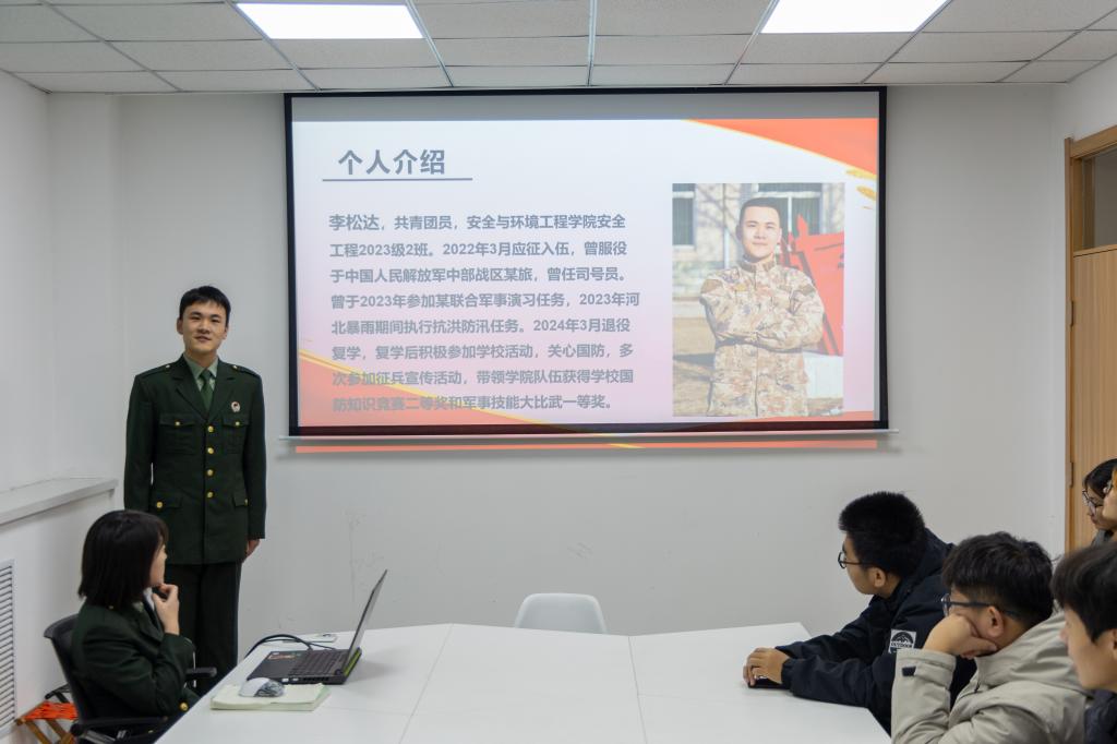 学院邀请了退役复学的学生代表李松达、李飒结合自己的亲身经历,讲述了在军营中的成长历程和所收获的宝贵财富。从日常训练到实战演练,从战友情谊到家国情怀,他们的分享让在场的同学们深受感动和启发。活动还组织预征体检,并为有入伍意向的学生提供一对一的精准服务,让同学们更深刻地感受到军队成长成才的优良环境,了解大学生入伍在政治荣誉、经济待遇、就业创业等方面的优惠政策。