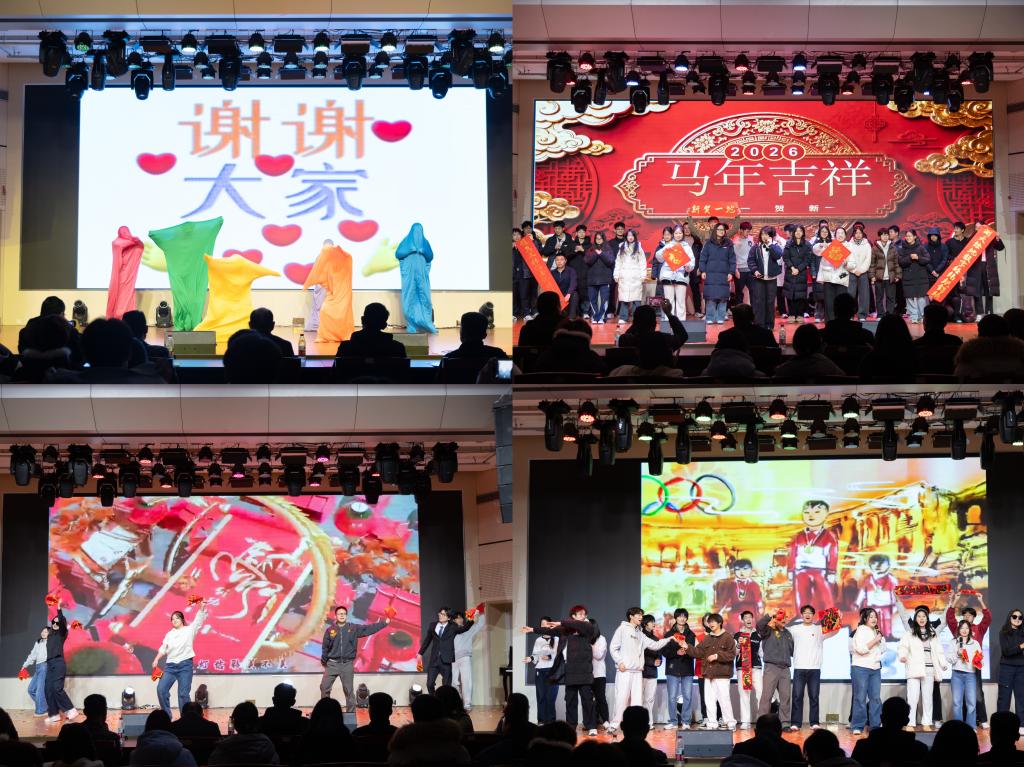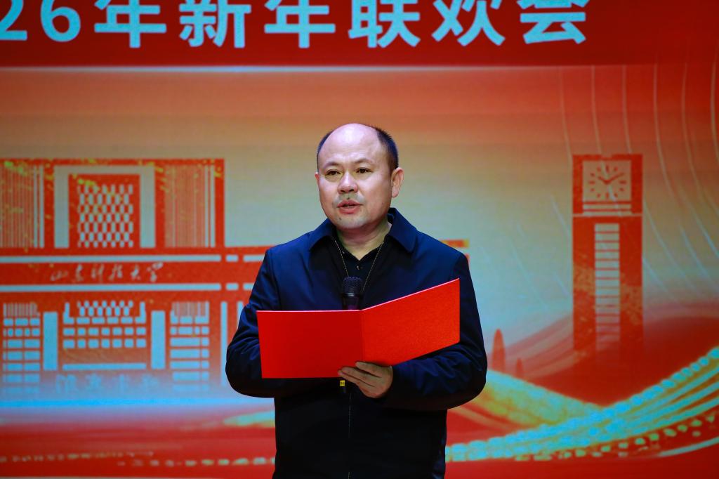 在联欢会开始前,范俊峰致辞,他回顾了2025年学院在思政建设、教学科研、人才引育、学团工作等方面斩获的丰硕成果,展望了2026年新发展蓝图,并向全体师生致以美好祝福。
