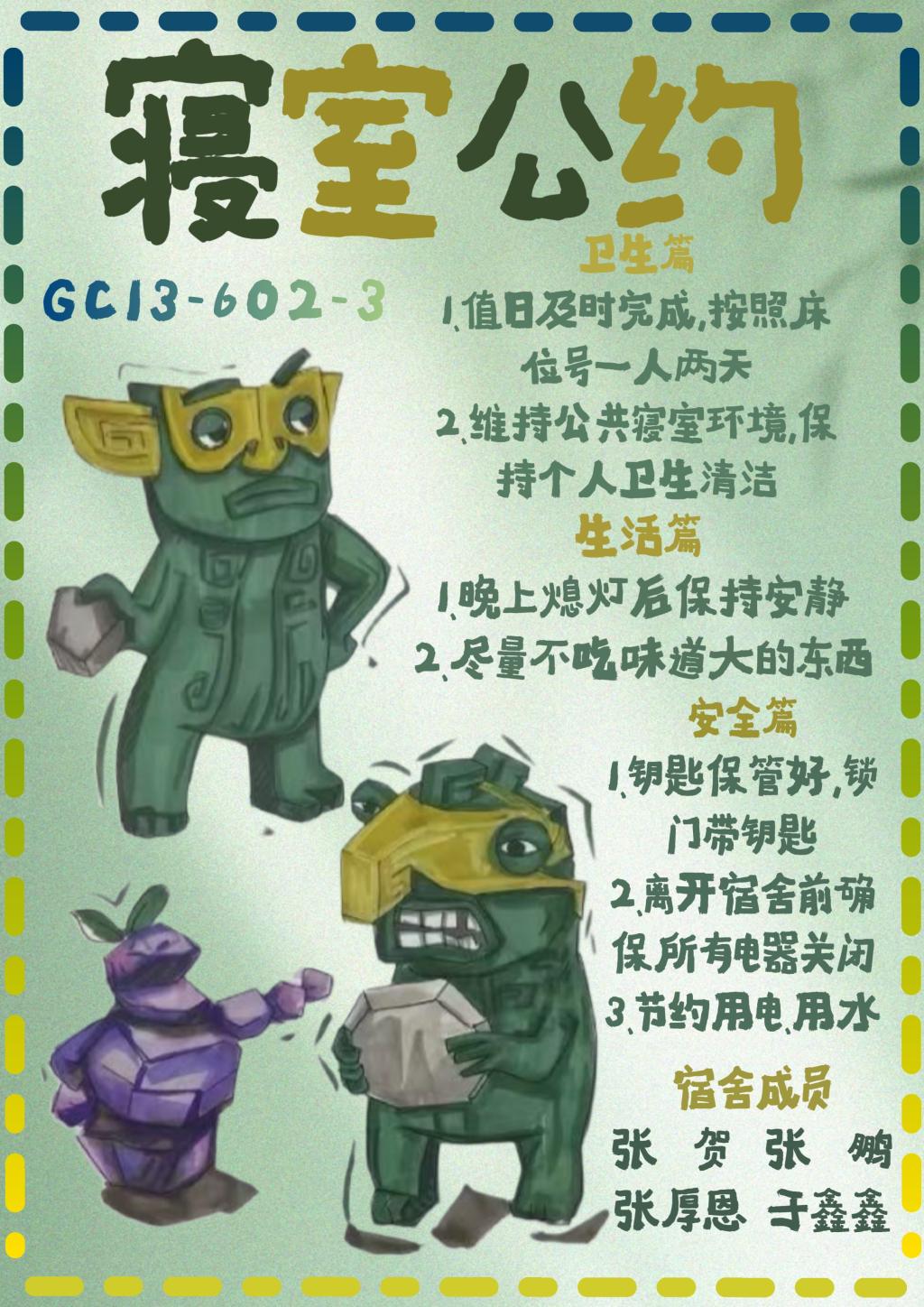 研究生会举办了“‘寓’你同行、‘室’事如意”宿舍安全文明公约设计活动。本次活动得到了广大研究生的积极响应,共吸引了51间宿舍、200余名同学踊跃参与,共收到51份制作精美的宿舍公约作品。