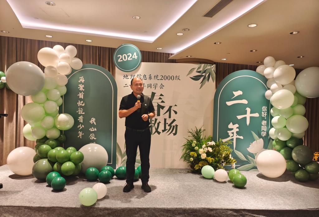 范俊峰出席晚宴并致辞,他表示:地理信息系统专业2000级作为专业的第一批学子,见证了地信专业的发展和壮大,校友们积极进取、拼搏奉献,在地理信息行业耕耘20年,取得了非凡的成就,为母校争得了荣誉,为学弟学妹树立了榜样,希望校友们一如既往地关心支持母校和学院的发展,为学院发展、人才培育积极建言献策,同时祝愿校友们工作顺利,阖家幸福。