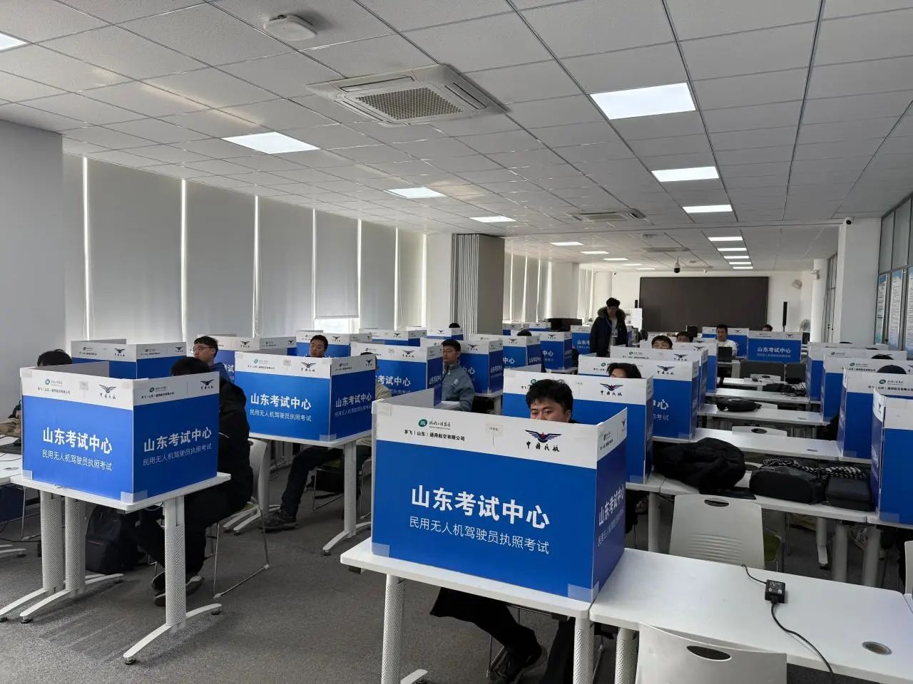 考生有序进入理论科目考场后,理论考试顺利展开。规范化、标准化的高配置理论考场,即使是首次前来考试的学员也没有丝毫的生疏感。对于睿飞无人机培训学校的学员来说,学、训、考同场地,更是考时如学时一样,各个知识点如在眼前。