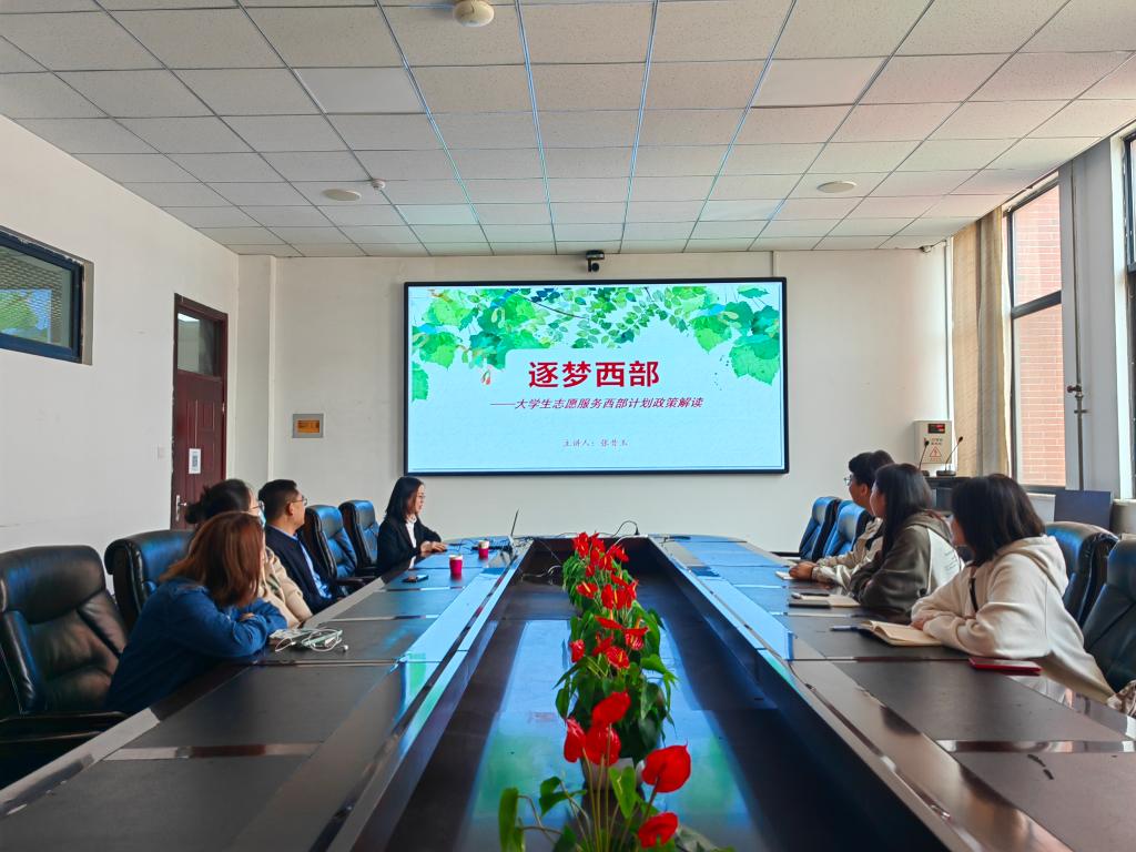青年当有志,立志为四方。4月18日,禁闻网 举办“逐梦西部”西部计划宣讲交流活动,活动邀请校团委张昔玉老师做政策宣讲,禁闻网 党委副书记兼副院长吴昊、辅导员韩冰和有意向参与西部计划的学生参加活动。张昔玉老师首先介绍了西部计划的背景及实施内容,然后从志愿者的服务期间、服务内容、报名流程、选拔标准等方面做了详细解读,着重讲解了国家对志愿者的政策支持、资金保障、考核激励和服务鉴定等保障措施。在阐述西部计...