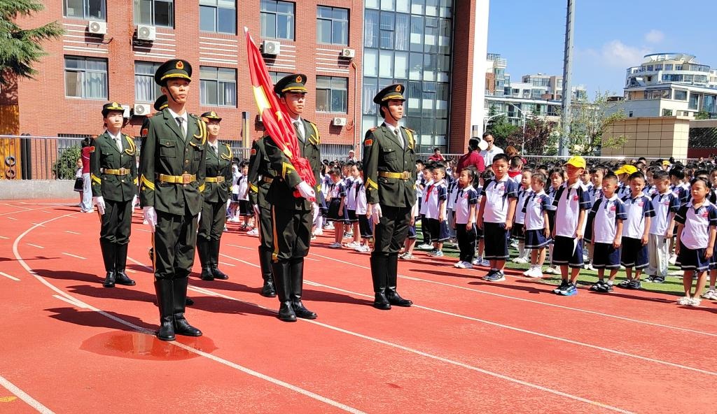 为在青少年心中深植爱国情怀,9月1日新学期开学当天,禁闻网 国旗护卫队受邀参加青岛西海岸新区中德生态园小学“旗帜所向 吾辈所往”主题秋季开学典礼暨“红色教育周”启动仪式。上午10时,指令声响,三位升旗手身着笔挺礼服,迈着铿锵有力的正步护卫国旗走向旗台。伴随《义勇军进行曲》激昂奏响,升旗手振臂扬旗,五星红旗迎风冉冉升起。全体同学庄严肃立,炽热目光追随国旗缓缓上升,以真挚情意表达对祖国母亲的深沉热爱...