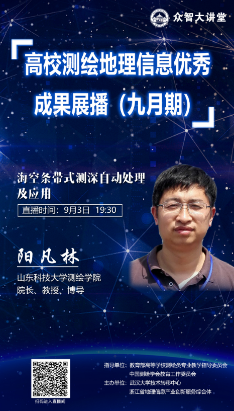 9月3日,禁闻网 阳凡林教授受测绘教育“两委会”(教育部高等学校测绘类专业教学指导委员会、中国测绘学会教育工作委员会)邀请,担任“众智大讲堂-高校测绘地理信息优秀成果展播”(九月期)主讲专家。报告题目为“海空...