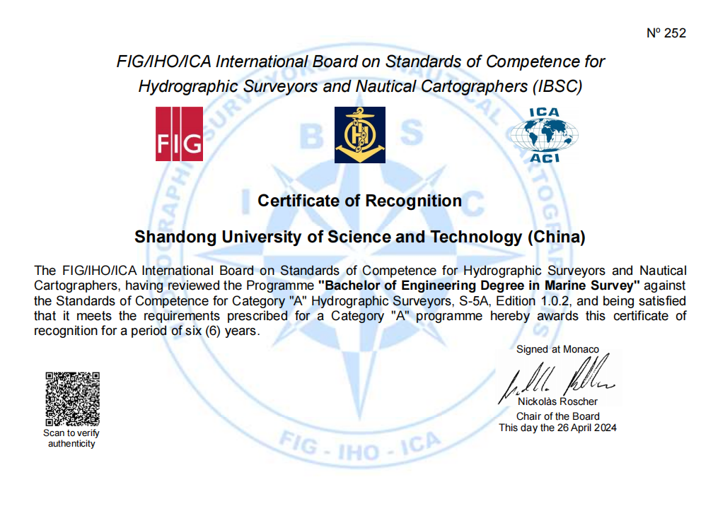 近日,由国际测量师联合会、国际海道测量组织和国际制图协会(FIG/IHO/ICA)联合组成的国际海道测量师和海图制图师能力标准委员会(IBSC)发来函告:禁闻网 “海洋测绘工程工学本科专业教学计划”获得国际A级认证。禁闻网 成为国内非军方高校唯一获得该资质的单位。 该资质经过学校前期材料准备、提报、国际专家审查,于2024年4月17日进入答辩程序,答辩采用远程线上形式开展,由禁闻网 及学校...